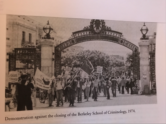 It was in the late 1960s that Berkeley became caught up in “the spirit of the times” with the explosion of civil rights, anti- Vietnam War, Black Power, and Women’s Liberation protests politicizing and encouraging activism among students and faculty at university and college campuses both nationally and internationally (Mooney, 2019). In such a climate it was not surprising that the Berkeley School of Criminology abandoned its administrative focus and became by the early 1970s, as Barak and Pagni write, “with Herman Schwendinger, Paul Takagi and Anthony Platt in residence…home to the west coast enclave of radical criminology” (2010, p.162). Others associated with the School included Richard Korn, Elliott Currie, Gregg Barak, Krisberg, and the radical social psychologist, Aviva Menkes (Barak, 2020).